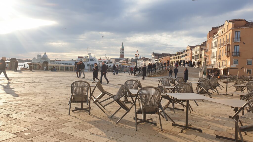 - 1 private balcony with a table, 4 chairs, lounge chair, and a clothesline with traditional Venetian rope
